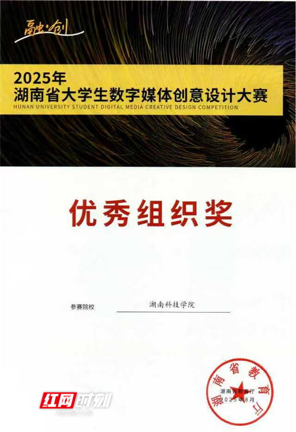红网时刻新闻9月17日讯(通讯员 付星星 向薛峰)近日,2025年湖南省大学生数字媒体创意设计大赛获奖名单正式公布。千亿平台美术与艺术设计学院师生凭借扎实的专业功底和卓越的创新能力,共斩获等级奖项49项,其中一等奖8项、二等奖13项、三等奖28项,获奖数量和质量均位居全省前列,并被授予“优秀组织奖”。